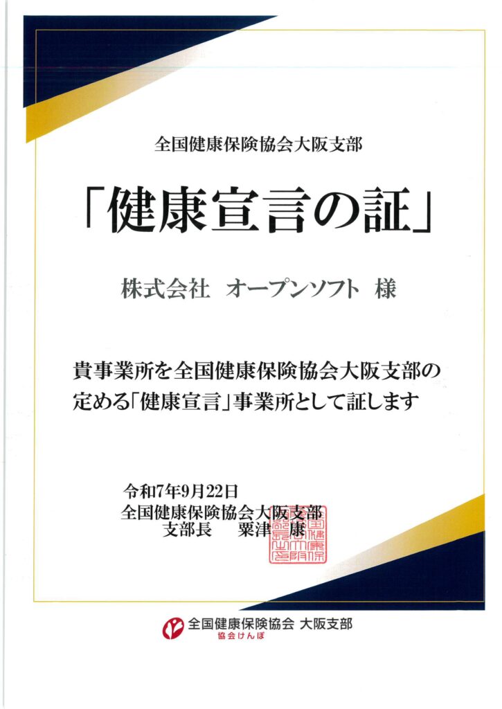 株式会社オープンソフトは、社員一人ひとりの健康を大切な経営資源と考えています。